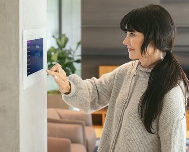 With one intuitive system, you can dim the lights, adjust the temperature, lower your blinds, and start your favorite movie—all with a single tap, voice command, or preset automation.