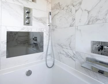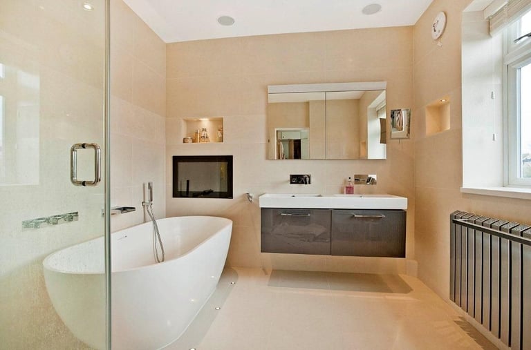The Spa Experience: In-Wall & Mirror TVs A bathroom TV is about more than just entertainment; it’s about creating a retreat. We specialize in "First-Fix" integration, working with your tilers to ensure a millimetre-perfect flush finish.